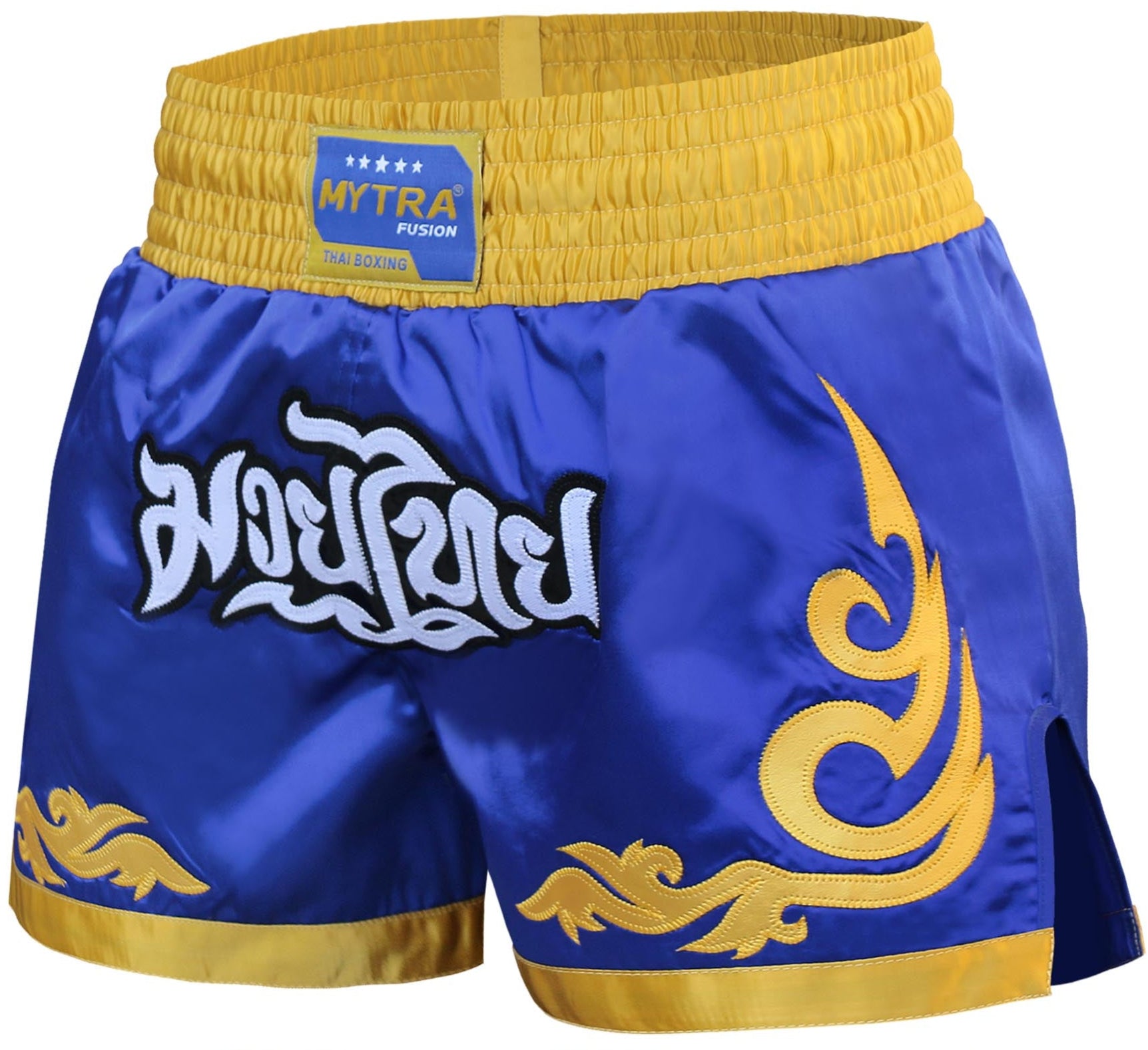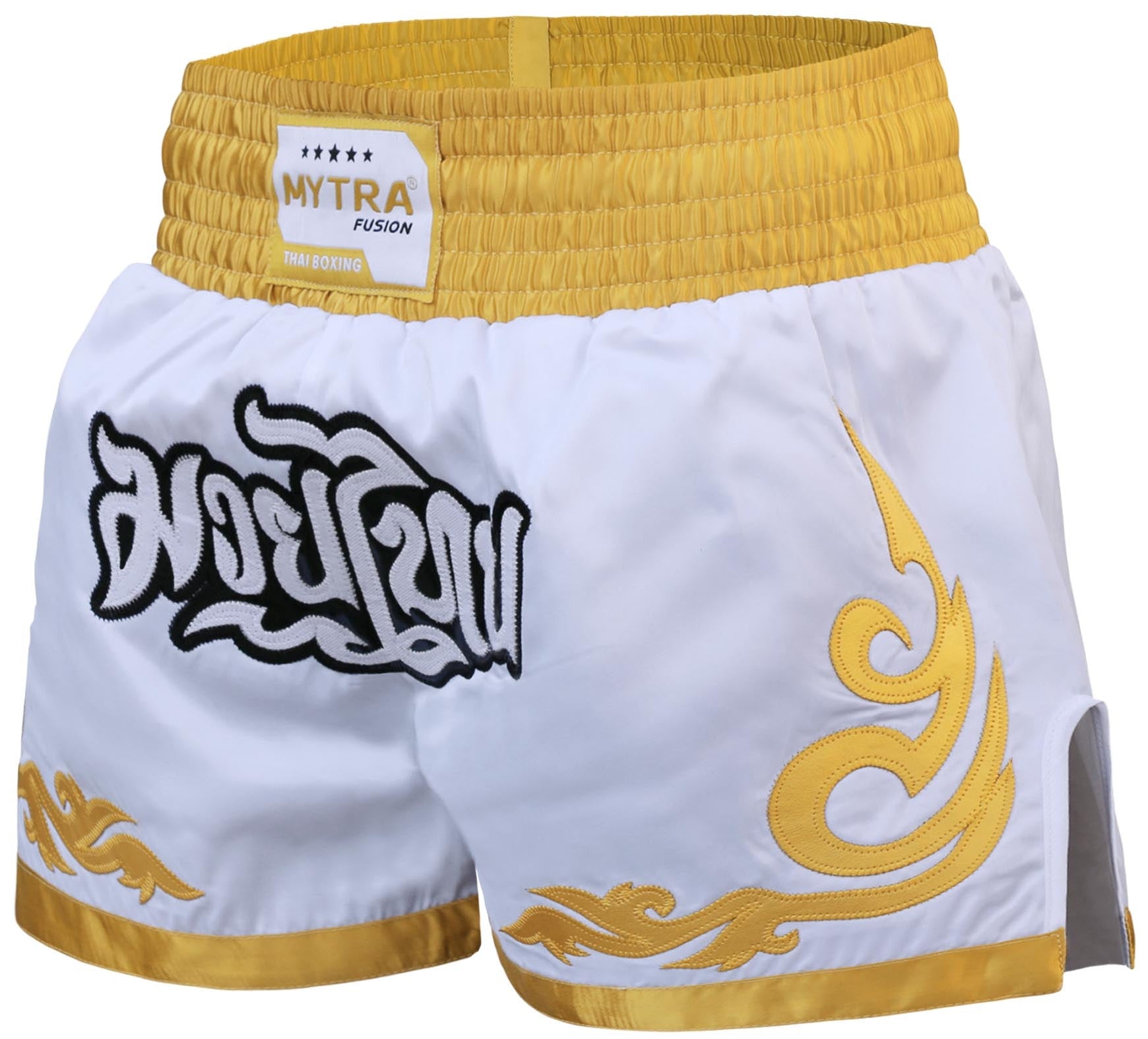 Mytra Fusion Muay Thai Shorts are designed for optimal comfort and performance during training. Made from high-quality, lightweight polyester fabric, these shorts are breathable and help keep you cool. They feature an adjustable elastic waistband for a perfect and secure fit. The durable stitching ensures these shorts can withstand intense workouts, while also allowing athletes to express themselves. They are ideal for Muay Thai, kickboxing, MMA, grappling, and other martial arts training. These shorts will enhance your workouts.