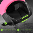 La mentonnière réglable à crochets et boucles assure un ajustement sûr et personnalisé.