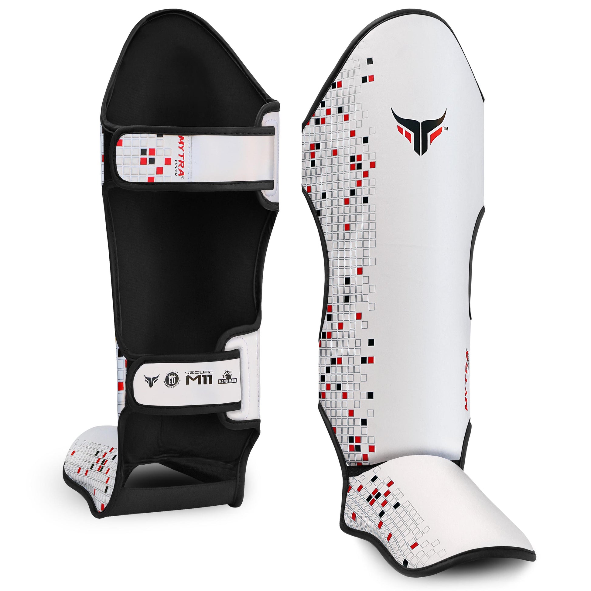 Protect your shins and train harder with Mytra Fusion M-11  Shin Guards. These durable and comfortable shin guards feature injection-molded foam padding for superior impact protection. Adjustable straps ensure a secure and personalized fit, while the stylish design makes you look great in the ring.